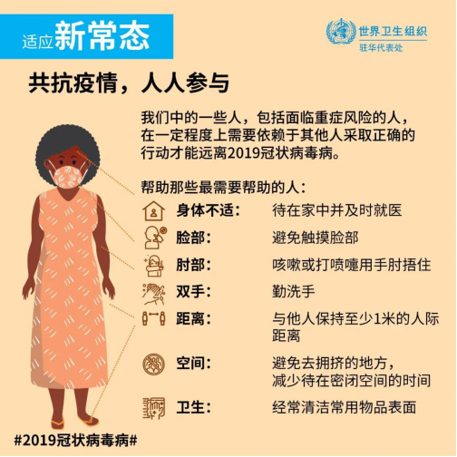 此次疫情已经持续超过半年时间。时刻保持警惕时常让我们感到焦虑和疲劳,但与此同时,只要病毒仍在世界上某个地方传播,就没有哪个国家或个人是百分之百安全的。个人和社会必须继续作出健康的选择,并继续行动。让我们团结起来,保持健康的行为。下面几张信息图帮你回顾如何保护自己和他人