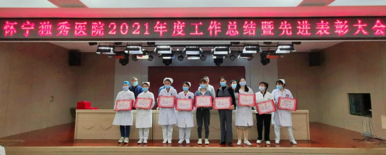 会议对2021年度先进科室和优秀员工进行表彰。经全院科室推荐和评审专家的评审,有2个科室获先进科室,有18名员工获优秀员工。
