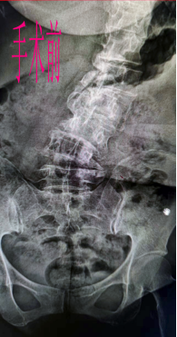 患者产某,女,52岁,潜山县王河镇人。因15年前不慎摔跌伤,髋部着地,在当地医院行X线检查提示有骨折征象,患者未予以重视,行药物保守治疗。近10年患者出现脊柱右侧侧弯现象,且情况逐渐加重,2月前病情再次加重,腰痛难以忍受,不能久站及长时间行走,脊柱活动严重受限,休息状态下腰背部即有酸胀感,遂来我院咨询骨二科主任丁士河副院长,丁院长详细询问病史并为其进行体格检查,结合相应的辅助检查结果,诊断为:继发性脊柱侧弯伴脊柱矢状位严重失衡,建议患者行手术治疗,办理住院后,丁院长随即联系安医大三附院脊柱骨科张之栋主任进行远程会诊,共同探讨并制定了手术治疗方案。7月2日在由张主任主刀、丁院长担任一助的共同努力配合下,历经5个小时成功完成了胸腰段后凸畸形截骨术、从胸10至腰6椎体的长节段侧弯矫形、钉棒内固定术,手术非常成功。高难度手术成功,不仅解决病人的痛苦,也使我科青年医师得到了一次十分难得的学习和观摩机会,获益匪浅。手术结束后患者家属对患者术后状态表示非常满意。患者术后第二天,静息状态下腰背部已无明显酸胀感,且下肢麻木酸胀感也较前明显缓解,目前正指导患者行功能康复锻炼。